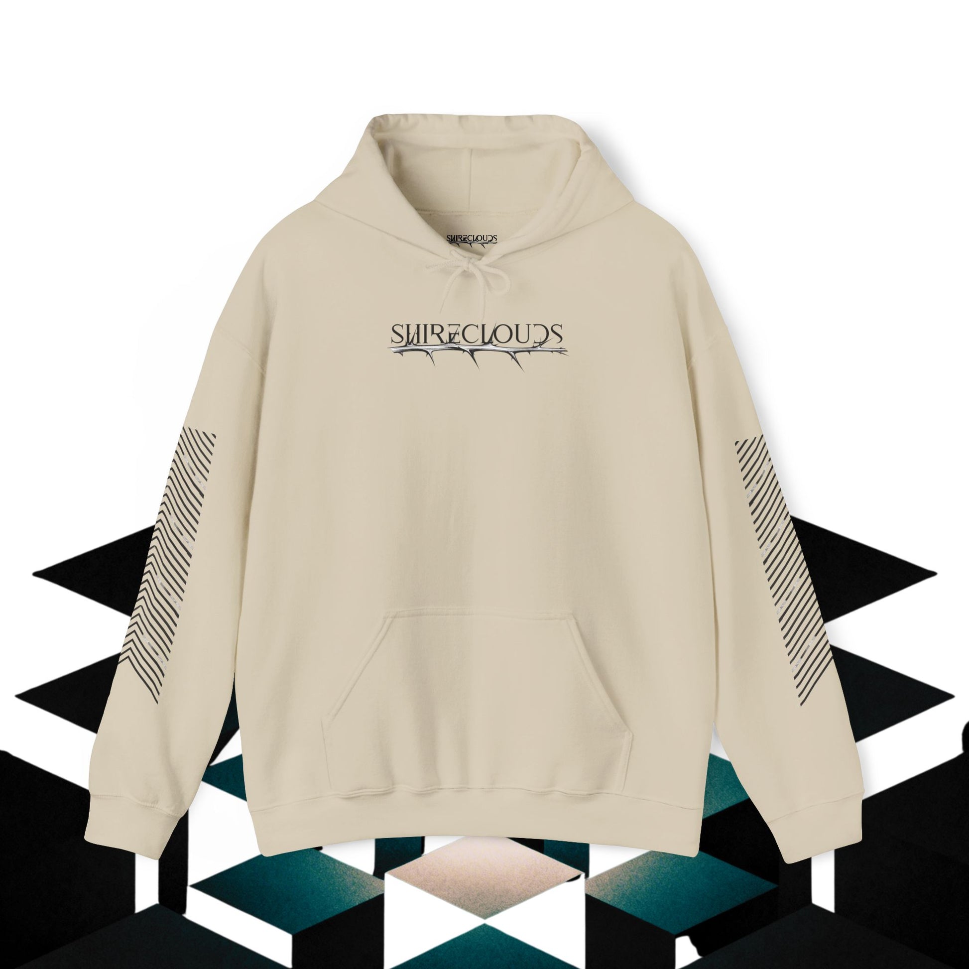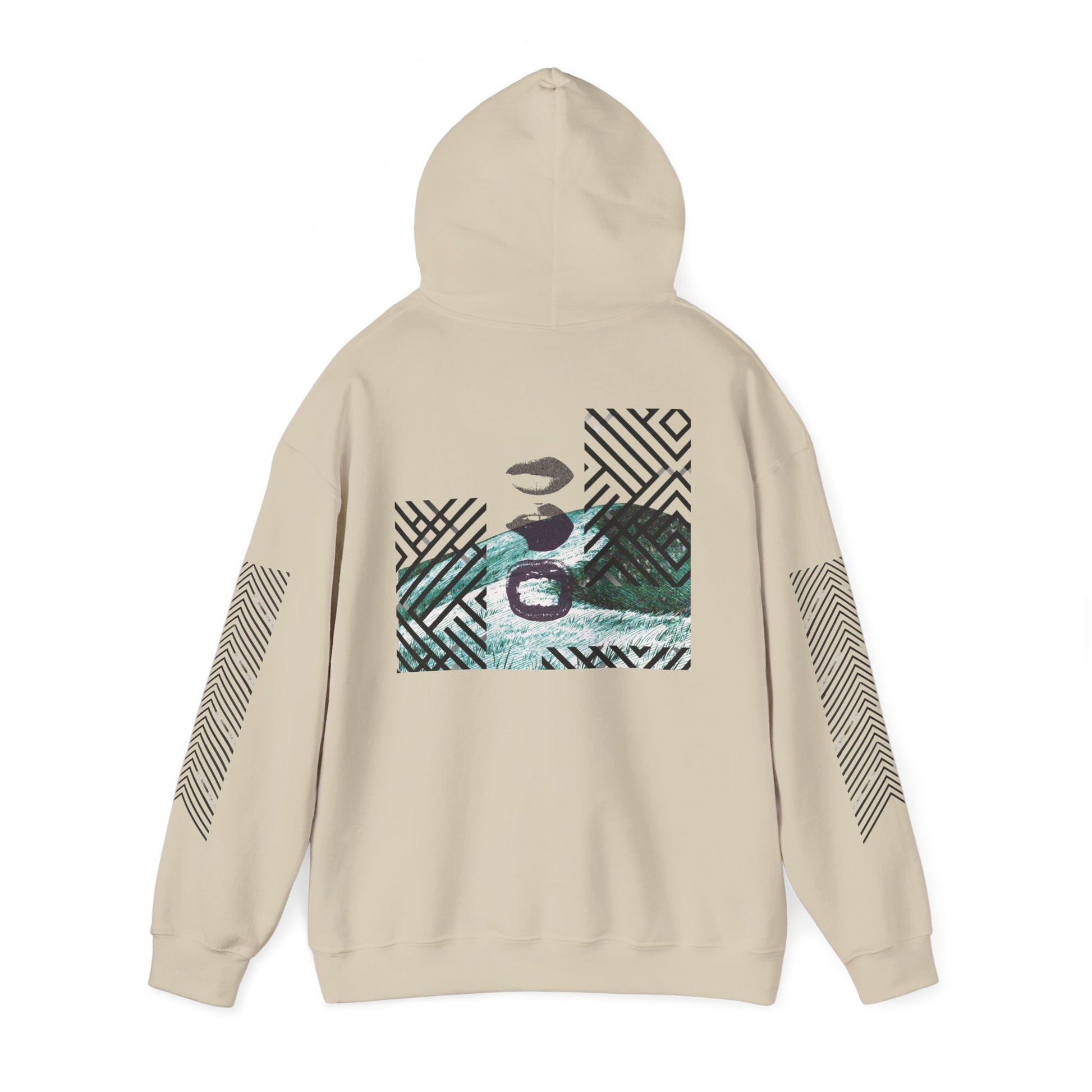 A soft, roomy premium hoodie that feels lived-in from the first wear. Neutral sand tone and subtle, graphic chest lettering give it an understated, streetwise vibe, while the back panel mixes abstract textures and muted teal waves for a layered, artful look. Sleeves feature diagonal stripe accents that elongate the silhouette and add motion. Wear it on long walks, late-night shows, or studio hangouts—this hoodie moves with you, keeps hands warm in the kangaroo pouch, and layers easily over tees and flannels. The drawstring hood and double-lined construction hold shape wash after wash, and optional embroidery or sleeve prints let you dial in a more tactile, limited-run feel.