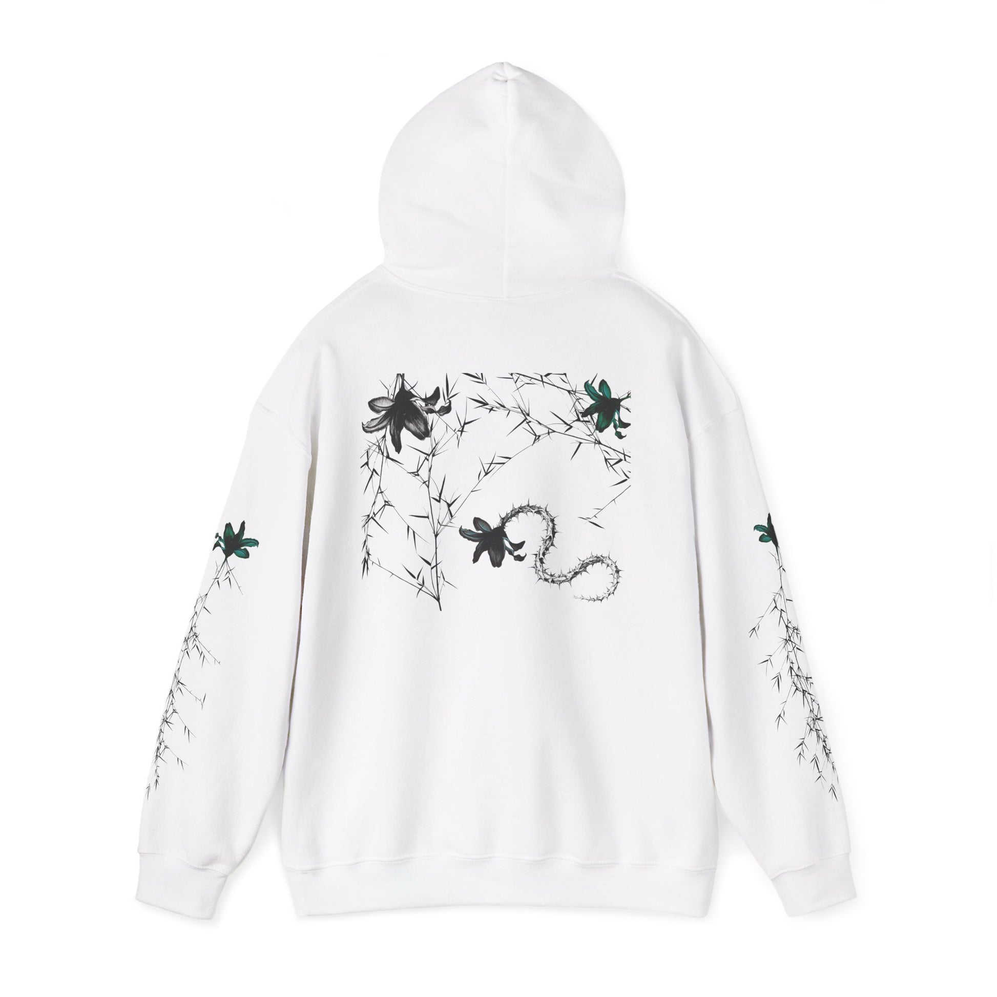 A Premium cozy, artful hoodie that blends street-ready comfort with delicate, nature-inspired graphics. Soft midweight fabric wraps you in warmth while subtle monochrome florals and a sinuous snake motif travel across the sleeves and back, turning a simple silhouette into a quiet statement. The roomy kangaroo pocket and adjustable drawstring hood make it a go-to layer for chilly mornings, late-night walks, or laid-back studio sessions. Wear it with jeans, wide-leg pants, or layered under a coat—this hoodie slips effortlessly into an everyday rotation while carrying a thoughtful, handcrafted feel.